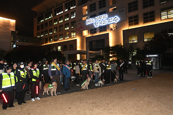 연수구(구청장 이재호)는 지난 18일 반려견 순찰대(일명 연수지킴댕댕이), 연수2동·동춘3동 자율방범대, 인천경찰청 기동순찰대 등 50여 명이 참여한 ‘민·관·경 야간 합동 순찰’을 진행했다.
